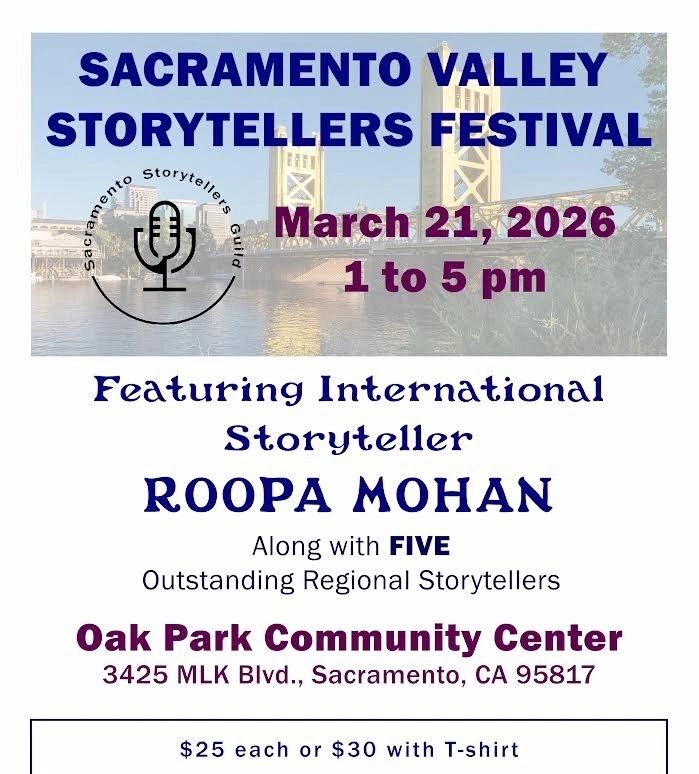 Better yet, see us in person on the third Saturday of every month (except for March 15, 2025 which is our Storytelling Festival held in West Sacramento) at the Sacramento Poetry Center, 1719 25th Street, Sacramento, CA, from 2:00 - 3:45 PM for our monthly storytelling performance.